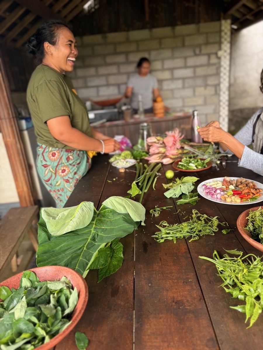 Wild edible leaves like ferns and cassava, torch ginger flowers, roots, and many plants used in traditional Balinese cooking and medicine. Your guide will show you dozens of edible plants and their traditional uses.